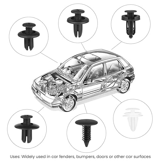 • UNIVERSAL APPLICATION: Discover a versatile assortment of car bumper retainer clips, encompassing 6 essential sizes. Ideal for door trims, radiator shield yokes, fenders, bumpers, and splash shield retainers, our car bumper clips kit ensures a perfect fit for your vehicle. Compatible with popular car brands like Ford, GM, Chrysler, Toyota, Honda, and more, this kit is your go-to solution for all your auto fastening needs.