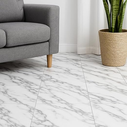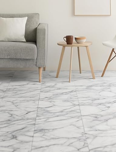 Store2508 Vinyl PVC Flooring Tiles Textured Marble Pattern Self Adhesive Peel & Stick Vinyl Flooring, 8 Tiles, 18 Square feet (White Marble)