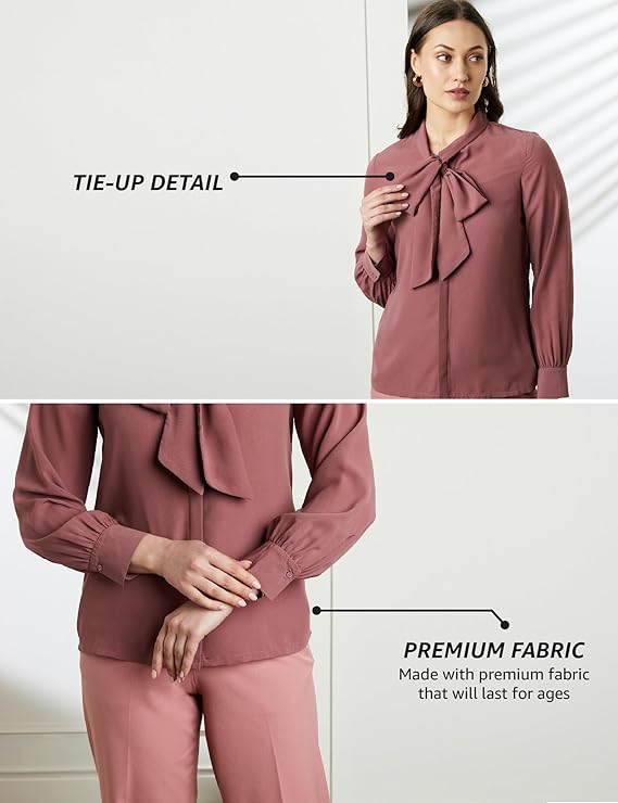 Symbol Premium Women Solid Desk-to-Dinner Bow Tie Top (Regular Fit) (Available in Plus Sizes)