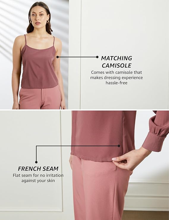 • WORKMANSHIP: Well-crafted for a clean, minimal finish, offering a refined look. This blouse comes with a matching spaghetti top inside allowing you to wear it confidently in various settings.