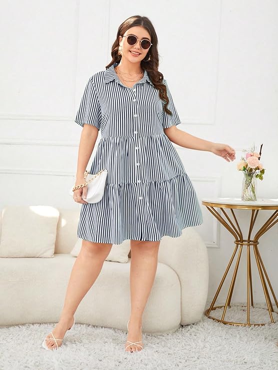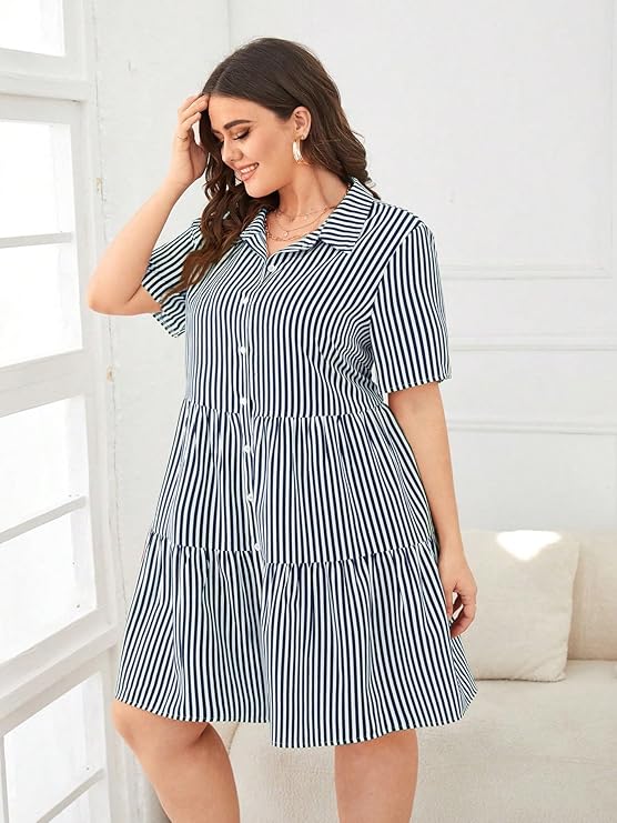 TADKEE Women Plus Size Short Sleeve Striped Dress | Maternity | Maxi Dresses for Women Western Dresses for Women