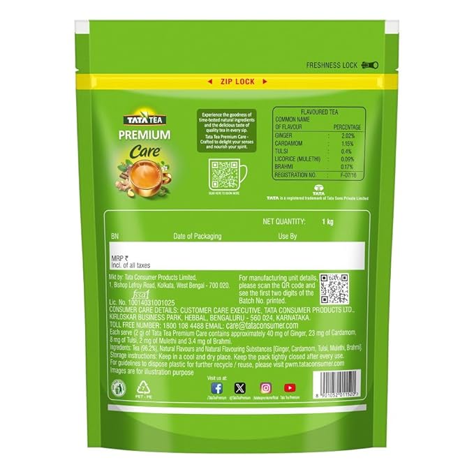 Tata Tea Premium Care Black Tea 1kg, Delicious Tea with Goodness of Tulsi, Mulethi, Ginger, Brahmi & Elaichi, Trusted Quality Tea, Loose Leaves