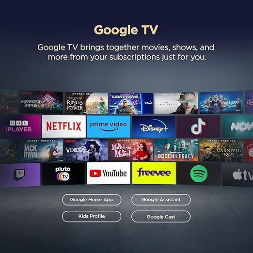 4K UHD LED Panel | HVA Panel | HDR 10 | AiPQ Processor | 100% Color Volume Plus| 178 Degree Wide Viewing Angle | Micro Dimming | MEMC | Metallic Bezel-Less Design | Dolby Atomos, Dts-X | Google TV |2GB RAM | 16 GB ROM | 64-bit Quad Core Processor| WIFII5 | Google Assistant |Prime Video, Netflix, Hotstar, Zee5 and more| Web Browser | Screen Mirroring | Multiple Eye Care4K UHD LED Panel | HVA Panel | HDR 10 | AiPQ Processor | 100% Color Volume Plus| 178 Degree Wide Viewing Angle | Micro Dimming | MEMC | Metallic Bezel-Less Design | Dolby Atomos, Dts-X | Google TV |2GB RAM |