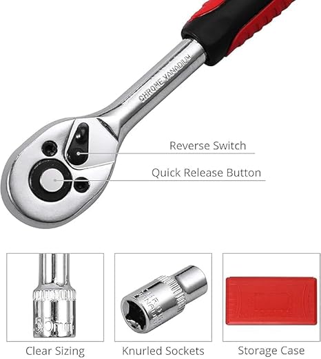 • 1 x - 1/@ Ratchet Handle 6 x - 1/2@ (Socket 12PT): 10-12-13-14-16-17MM