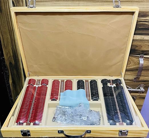 • +/- sph 30 pairs each. +/- cyl 18 pairs each. 10 Prisms, 7 Accessories.