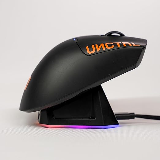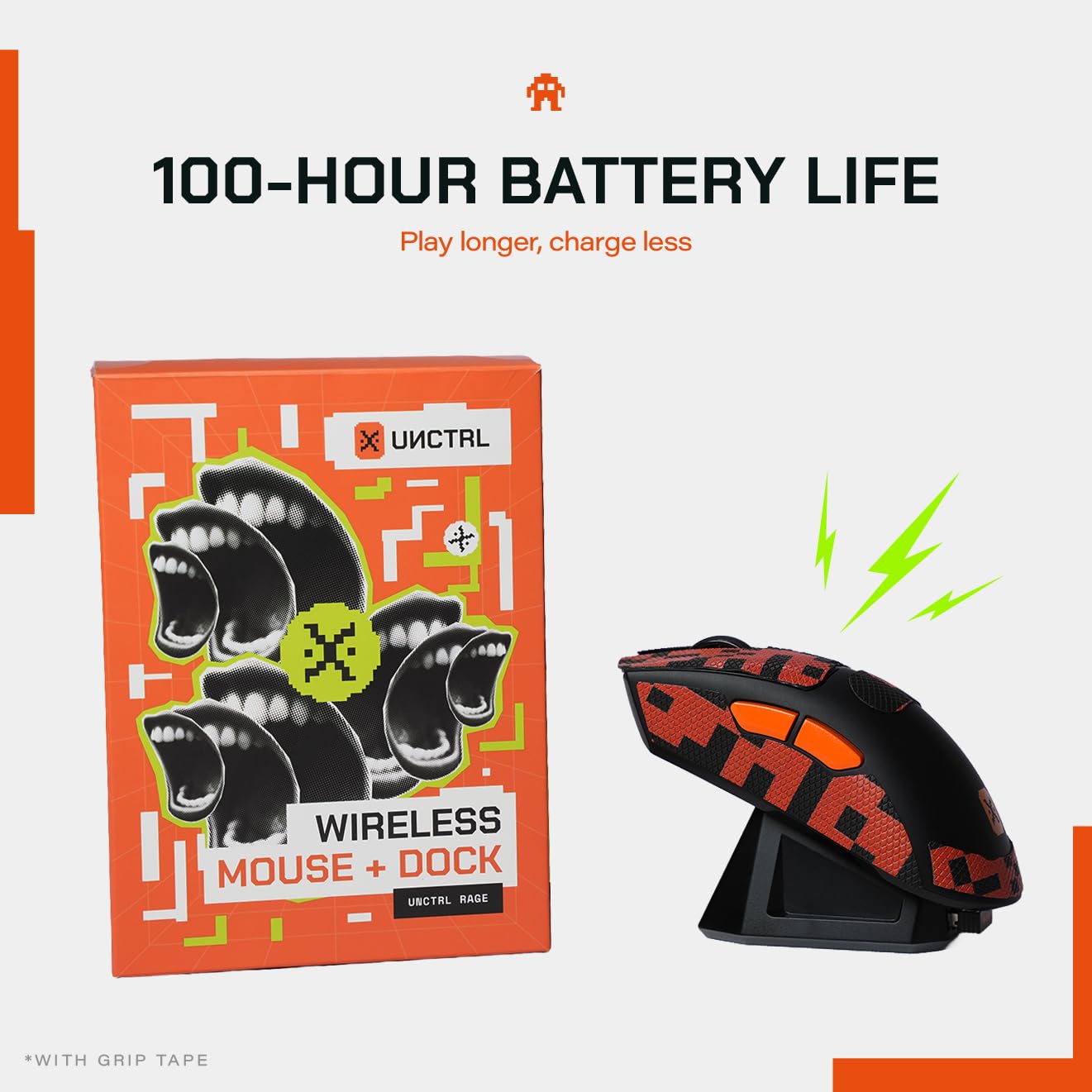 UNCTRL Rage Wireless Gaming Mouse + Dock with PixArt 3395 Sensor/26000 DPI/650 IPS/50G Acceleration/1000Hz Polling Rate/62g Ultra-Lightweight/Huano Switches/Magnetic RGB Charging Dock/100Hr Battery