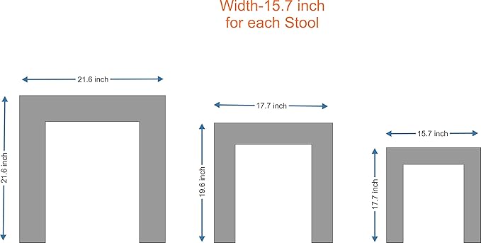 • Nested Tables for Living Room has a ideal Size as the Stool Set Dimension are : Large: Length 21.6 Inch x Width 15.7 Inch x Height 21.6 Inch, Medium: Length 17.7 Inch x Width 15.7 Inch x Height 19.6 Inch, Small: Length 15.7 Inch x Width 15.7 Inch x Height 17.7 Inch