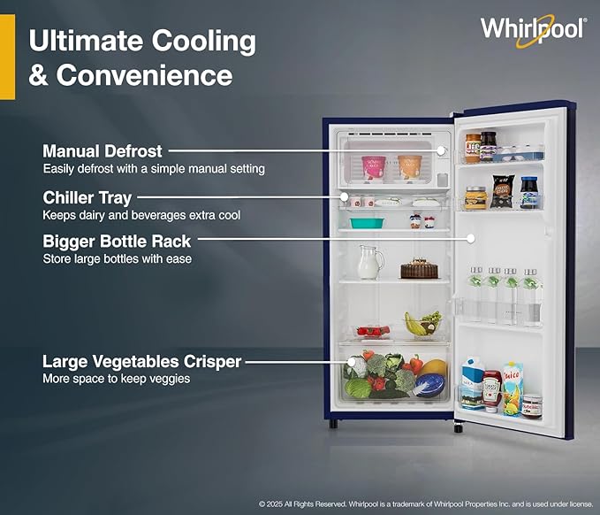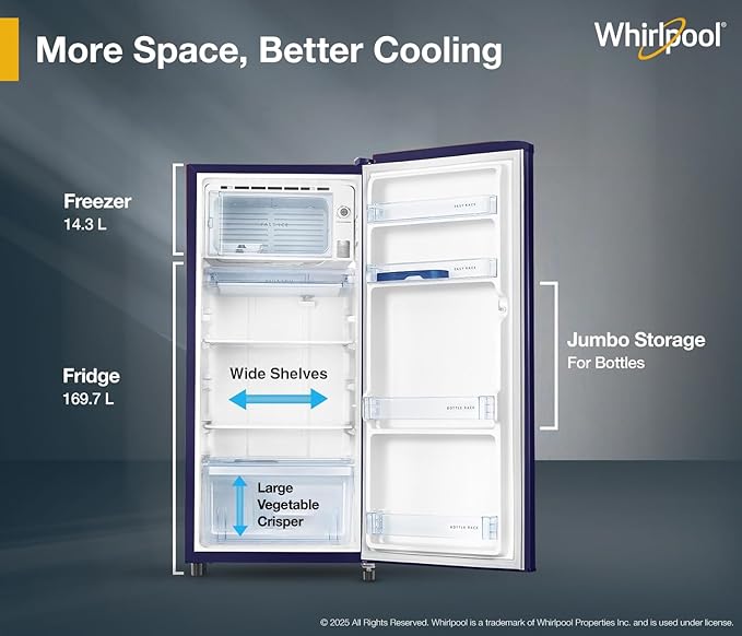 Whirlpool 184 L 2 Star Direct-Cool Single Door Refrigerator (205 WDE CLS 2S SAPPHIRE BLUE-Z, Blue)