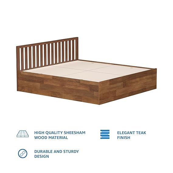 With Box Storage Solimo Petra Box Storage Solid Sheesham Wood King (78 x 72) Bed (Teak Finish)