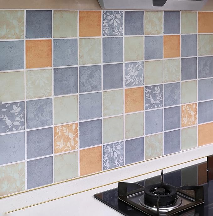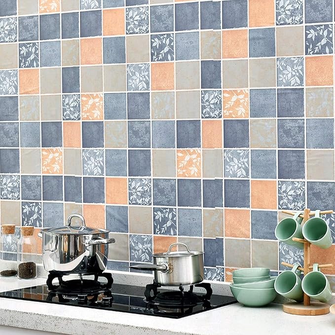 • 🟦 TILE-INSPIRED DESIGN – Blue and orange tile pattern adds a vibrant touch to kitchen backsplashes, counters and walls.