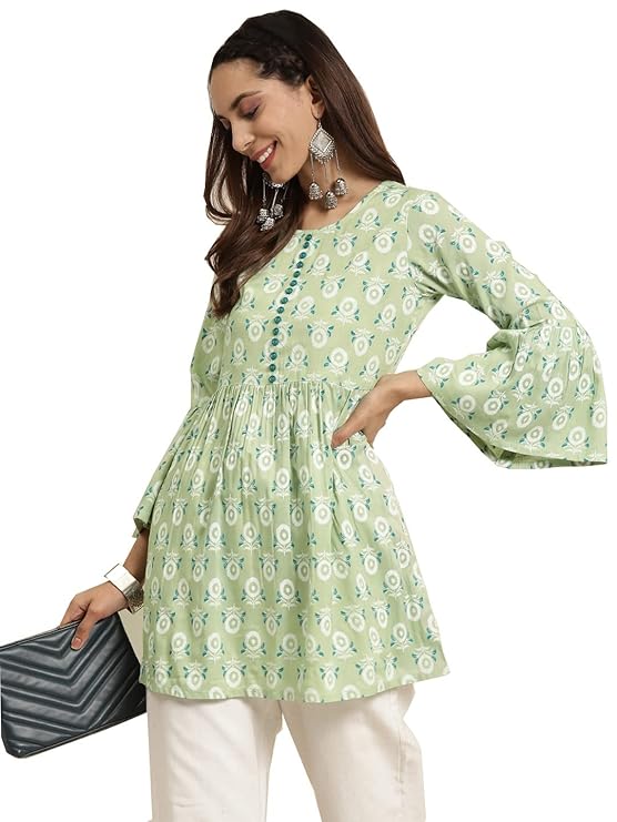 Yash Gallery Women Rayon Regular Fit Short Floral Printed Kurta Top