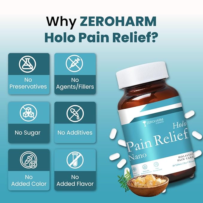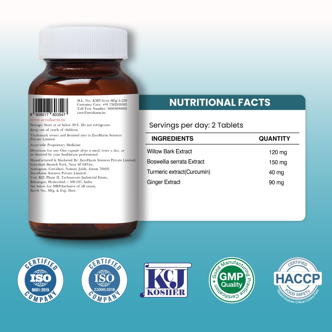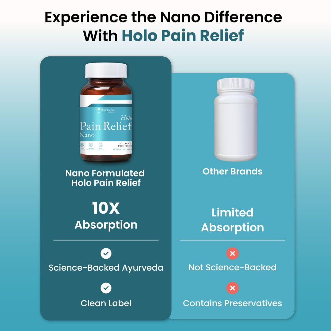 ZEROHARM Holo Pain Relief Tablets|Plant-Based|Pain Management|Reduces Knee-Joint Pain|Improves Mobility|Willow Bark, Boswellia, Turmeric & Ginger | Body Pain Relief
